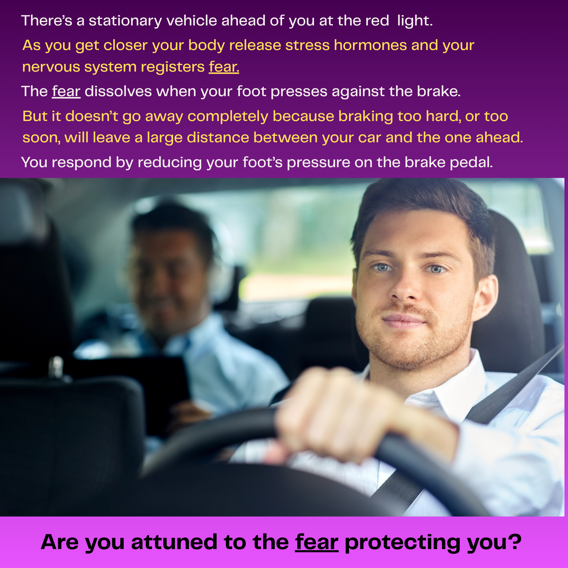A person’s full attention becomes focused on the perceived threat, which can lead to serious accidents.